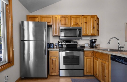 Step into `Pelican View,` where history meets modern comfort. This inviting suite, just one block from Cannon Beach, promises easy access to Haystack Rock. Unwind by the cozy gas fireplace, or whip up gourmet meals in a fully equipped kitchen. Whether you’re enjoying a movie night with loved ones or a serene morning coffee, this rental is designed for relaxation. Explore vibrant Hemlock Street full of delightful shops and eateries or simply lounge on the beach.