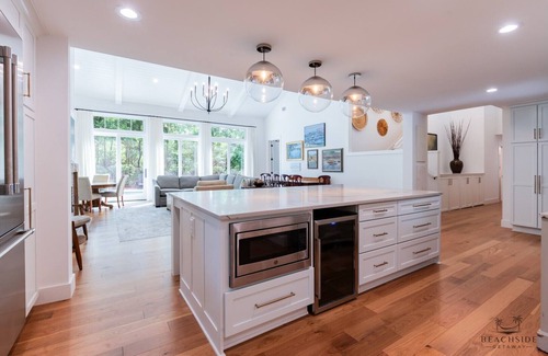 You will be drawn to the updated kitchen, where culinary aspirations come to life. Boasting state-of-the-art appliances, sleek countertops, large kitchen island, and ample storage space, this kitchen is a chef's delight. Whether you're preparing a quick weekday meal or hosting a lavish dinner party to enjoy during your vacation, the kitchen is designed to cater to your every need.