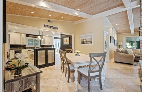 ✓ Dining table seats 6, plus additional bar seating at the island for 3