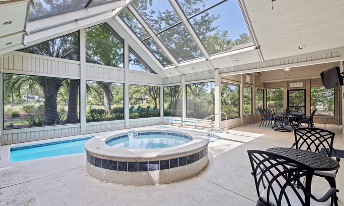 HOST & HOME presents...10 Woodbine Place! Escape to this luxurious 4-bedroom retreat in the heart of Sea Pines, Hilton Head. Unwind with stunning golf course views, a private screened pool & spa, and an office for remote work. Only 0.5 miles from the beach, this home is the perfect blend of relaxation and convenience. Immerse yourself in upscale living and leisure with top-tier amenities. Learn more below...