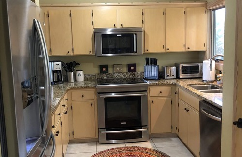 The kitchen is a cook's kitchen stocked with a Cuisinart drip coffee maker, Keurig coffee maker, Cuisinart toaster oven and toaster, Ninja blender, Crockpot, hand mixer, Viking cookware, pottery serveware, a wide assortment of barware, glassware, Orca insulated tumblers, (2) complete sets of dishes, high-end knives, etc. Enjoy beautiful views of the Gulf from the kitchen! The dining room table comfortably seats (8) and there is additional kitchen counter bar seating.