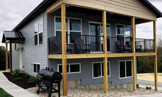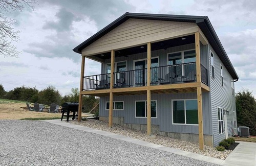 This brand new farmhouse located on 100 acres is a great place for a group of up to 12 to stay in a peaceful setting and enjoy creation. With four bedrooms, two full baths and a rec room in addition to the living room, dining room and kitchen, there is plenty of room to enjoy some quality time with family or friends.