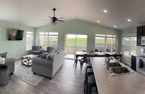 This brand new farmhouse located on 100 acres is a great place for a group of up to 6 to stay in a peaceful setting and enjoy creation.