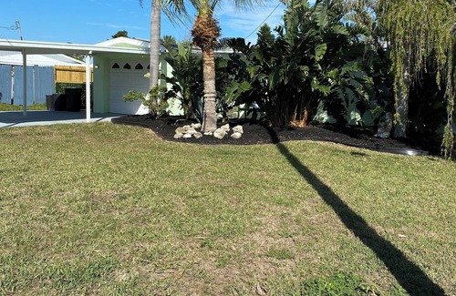 Two bedroom, one bathroom private home on canal. Swim from either of two docks. Less than half a mile to a cafe, bar and pizza restaurant. Less than a mile to beach bars and public beach. Launch the kayaks from the back yard and go to the beach, beach bars or state park. See manatees and dolphins just a five minute kayak ride away in the gulf.