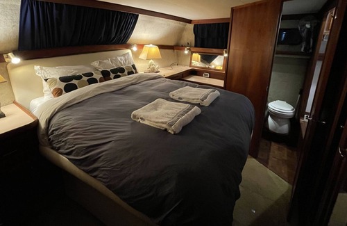 Pictures are to show what the yacht looks like it is not where the boat is located. Only a 10 mins drive to Fort Monroe and 20 mins away from Norfolk and Yorktown. 30 mins to busch gradens. 5 min walk to Salt Pond Beach.A expierence that everyone should try sleeping on a yacht. Whether you enjoy morning coffee on the upper deck or dinner at sunset on the rear patio deck, or just sunbathing on the forward promenade . Memories are waiting for you here in this waterfront experience.