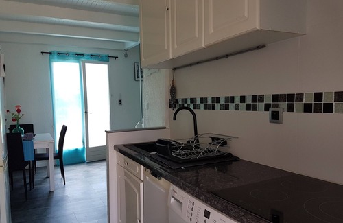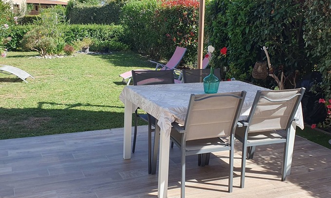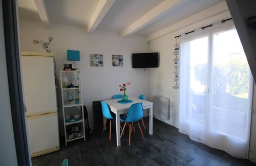 The villa, equipped for 5 people, is composed on the ground floor of a kitchen, a dining / TV with chairs, a bathroom with shower and toilet. Upstairs are 1 bedroom with a 160x200 bed and wardrobe and a bedroom with 1 140x190 bed, mezzanine 90x190 bed and a dressing room. The bedding is new and quality. Air conditioning in the 2 bedrooms.