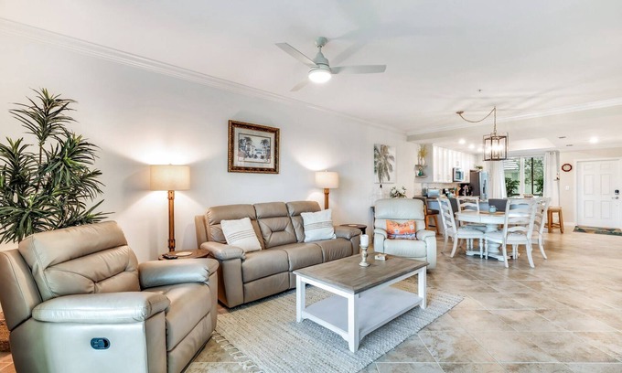 PET FREE BABCOCK NATIONAL VACATION RENTAL WITH GOLF, GARAGE & GOLF CART RENTAL AVAILABLEA Golfers Vacation Paradise, with All the Comforts of home ~ With a Golf Cart Rental Option available with your stay. This First Floor (Bromelia Floor plan) Babcock National Veranda Style Condo, has been beautifully furnished inside and out, with everything you need right down to the Beach Chairs & Pool Towels.