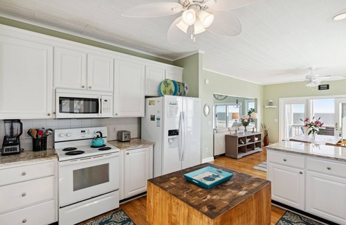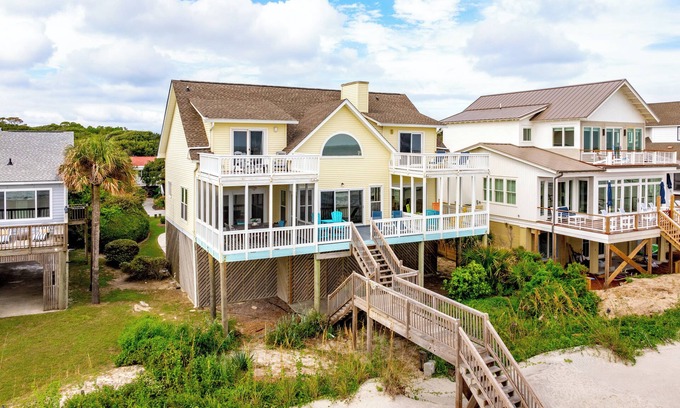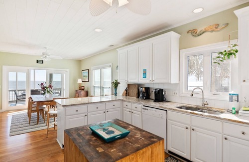 Welcome to Dolphins Folly! This stunning 3BD/3.5 BA oceanfront home can accommodate eight guests and has an ocean view from every bedroom! This house is a beach lovers dream, with access to the beach directly from the property. Enjoy your morning coffee on one of the oceanfront decks or a family meal from the ocean-view dining room with plenty of seating.