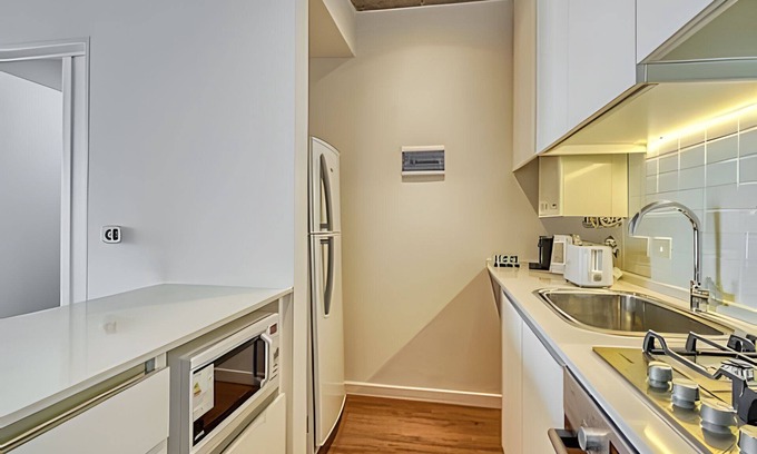 2-room apartment with capacity for 4 people. It has a full kitchen, microwave, Nespresso coffee maker, toaster, set of cooking pots, and dishes for 4 people. Master bedroom with 1 queen bed measuring 1.90x1.60 with en-suite bathroom. The living room has a sofa bed for 2 people. There are 2 single beds. Kitchen equipped for 4 guests. The apartment has 100 megabytes Wi-Fi and cable television. Hair dryer that is mounted on the wall of the main bathroom. Garage in the building USD 15 per day. (Check availability)