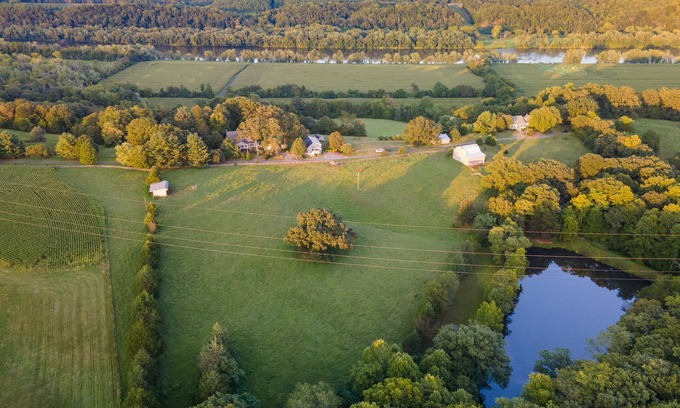 Escape to Riverview at Belle Meade Farm, a magnificent 106-acre estate overlooking the James River, once owned by Thomas Jefferson's family. Nestled in the serene countryside, our property is just a mile away from the charming historic downtown of Scottsville, and a short 25-minute drive to Charlottesville, Monticello, UVA, and many award winning wineries and breweries.