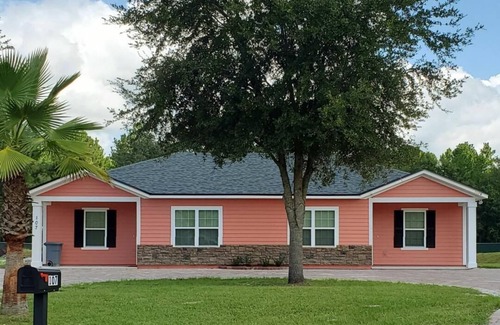 Brand new 2 bedroom, 1.5 bath fully furnished unit with full kitchen, refrigerator, dish washer, stove & oven. Peivare washer & dryer. Both bedrooms have a queen bed. Situated in a nice, cozy, neighborhood with access to a pond with gazebo. Also, have access to the St. Johns river with private boat ramp. Not far from the Ocala National forest, and a short drive to the St. Augustine beaches!! One pet allowed in home with owner permission and $75 pet fee for the stay. An additional pet may be allowed but must be approved by owner and an additional fee will be charged. Please inquire first.