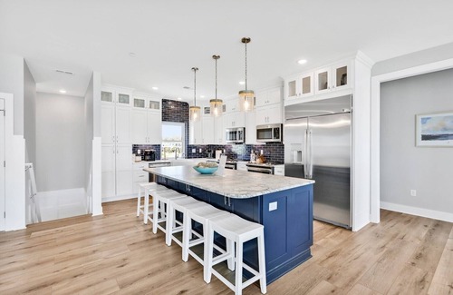 This magnificent home features an array of upscale amenities that are sure to impress. An elevated saltwater swimming pool and hot tub provide a serene escape, while the oversized chef's kitchen is equipped with double convection appliances and an expansive island perfect for hosting pre-wedding gatherings. Every bedroom is a suite with its own private bathroom, ensuring comfort and privacy for all guests. Sprawling decks and multiple family gathering areas, both indoors and out, allow your loved ones to come together and celebrate in style. Additionally, the property is wedding-friendly, with options for hosting events (additional fee applies), making it an exceptional choice for your special day.