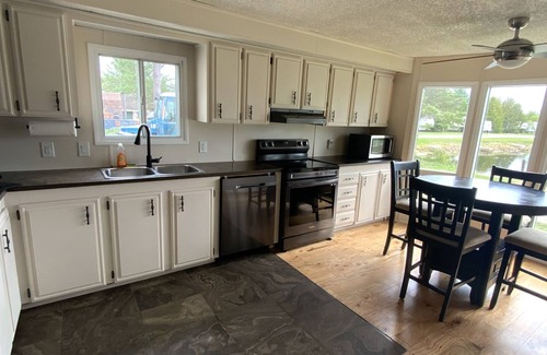 Relax with the whole family at this peaceful place to stay. Enjoy a lovely view of the canal while sipping your morning coffee. Lots of room to entertain and dine with your friends and family. With the open concept living an dining area you can connect with the whole family. Reconnect with nature, Grab your fishing pole or just enjoy the beautiful Sunsets. Full kitchen amenities and full living room with large windows and a couch with extra sleeping. Large bathroom with shower and bathtub.