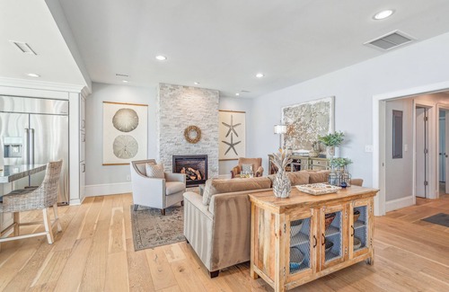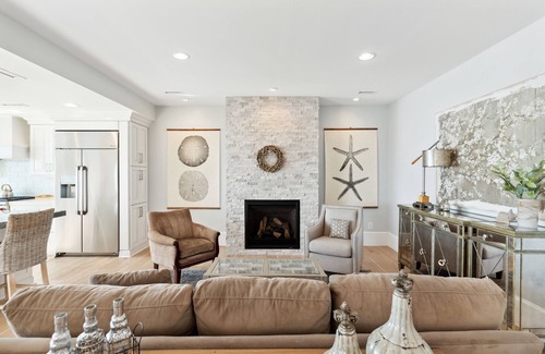 White Sands, renovated head to toe (2020), features gorgeous hardwood floors and a more than spacious, entertaining high-end kitchen consisting of a giant island that opens up to the dining and living areas. It also includes a chef's gas range, more than enough counter space for preparing meals for family and friends, plenty of seating between the kitchen table and porch tables, and additional bar stools off the counter. In addition, the furnishings, artwork, culinary dream kitchen, and high-end finishing throughout the home will not go unnoticed.