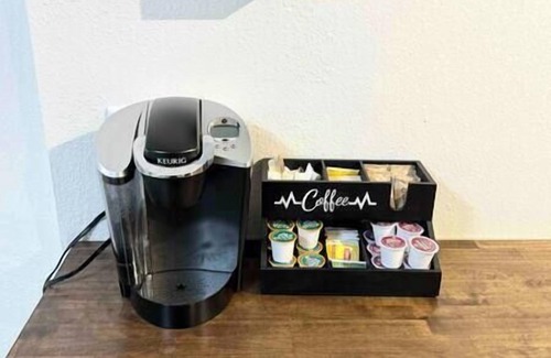 • Keurig Coffee Maker: Enjoy regular or decaf coffee, plus a selection of teas