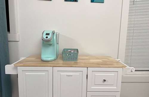 • Coffee Essentials: A dedicated coffee station includes a Keurig machine, with regular, decaf, and tea options provided to start your mornings off right.