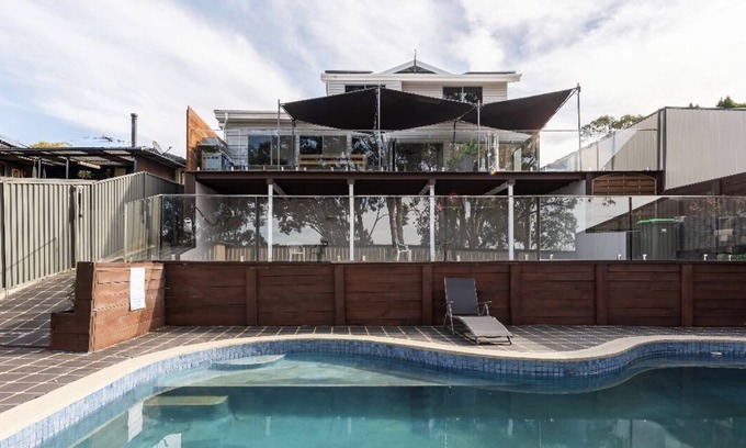 5 bedroom family home makes the perfect stay. SO You’ll have 1 full gourmet kitchen a butlers kitchen and a kitchenette, 2 bathrooms, 3 lounge room living areas, a massive back deck with city views and the huge In ground pool. Walking distance to the museum, river and train station.