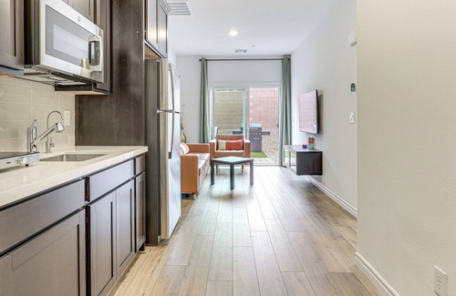 Located in a tranquil corner of Henderson, with easy access to dining, entertainment, and outdoor adventures, this 1-bedroom, 1-bath vacation rental condo provides the perfect base for a comfortable extended stay. Start your day with coffee on the patio, then visit landmarks like the Hoover Dam or the Las Vegas Strip. As night falls, gather in the kitchenette for snacks and enjoy a relaxing movie night.