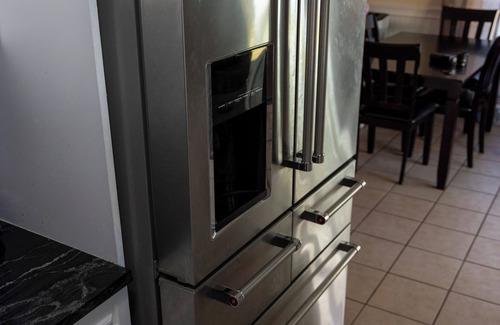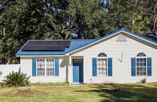Welcome to your perfect getaway! This charming 3-bed, 2-bath home features a bright white exterior, stunning blue metal roof and door. Enjoy cooking in the new kitchen with granite countertops, stainless steel appliances, and a spacious 25.8 cu ft fridge. The large backyard, complete with a vinyl fence and gates on both sides, offers plenty of space to relax or play. Energy-efficient solar panels and a pet-friendly policy make this home ideal for families and furry friends. Book your stay today!