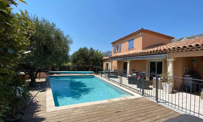 125 m² villa with swimming pool facing sainte Victoire is located in Puyloubier. 125 m² villa with swimming pool facing sainte Victoire provides accommodation, featuring Pool, Wellness Facilities, Barbecue/Outdoor Cooking, among other amenities. This Villa features Pool, Wellness Facilities, Barbecue/Outdoor Cooking, to make your stay a comfortable one.