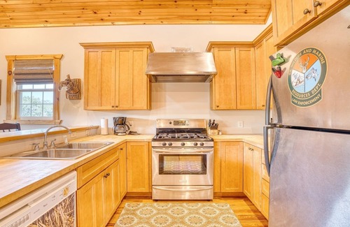 The cottage boasts a fully equipped kitchen, new comfortable mattresses, and a top-of-the-line washer and dryer. Relax by the cozy gas fireplace, and stay entertained with a large screen TV and internet access.
