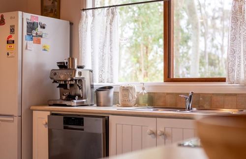 Relax on the deck amongst the gum trees or curl up on the lounge with a good book and soak up the peace with the wood burning fire crackling. With cathedral ceilings and large windows – the shared spaces are flooded with light making the home incredibly welcoming.