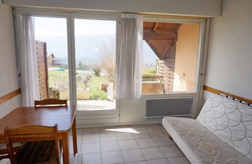 In a rural setting, quiet, with a breathtaking view of the Lac du Bourget and the mountains. Apartment located in a tourist residence.