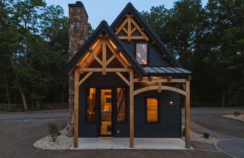 Discover peace in nature in this enchanting timber frame cabin surrounded by mature oak trees and peaceful lake views. 400 acres of hiking trails, two stocked lakes, and nearby attractions, this cabin will take your next vacation to a new level. Our two-bedroom cabin has the amenities you need including High Speed Internet and a wood burning fireplace. The Cabin comes equipped with a fully stocked kitchen. PETS WELCOME