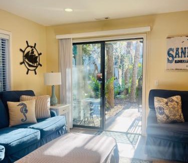The air-conditioned accommodation is a 9-minute walk from Coligny Beach Park, and guests can benefit from private parking available on site and free Wifi. The apartment features an outdoor swimming pool and bicycle parking. Featuring a terrace and garden views, the spacious apartment includes 3 bedrooms, a living room, cable flat-screen TV, an equipped kitchen, and 3 bathrooms with a bath and a shower. Towels and bed linen are available in the apartment. The property has an outdoor dining area. Hilton Head Airport is 7.5 miles from the property.