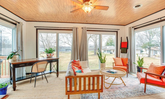 Experience a balance of tranquility and adventure at this 2-bedroom, 2-bath vacation rental in Blue Springs! This family-friendly home is situated just a short drive from Kansas City and features a cozy sunroom, a deck for sipping morning coffee, and a full kitchen for preparing homemade meals. While you're here, consider exploring the trails of Burr Oak Woods Conservation Area or cheering on the Royals at Kauffman Stadium!
