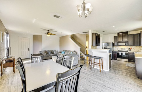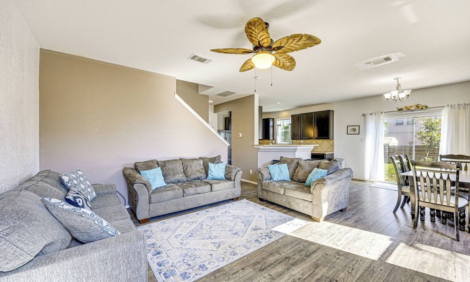 Explore San Antonio’s rich history and culture from this 4-bedroom, 2.5-bath vacation rental. The home is close to I-37, which makes the 13-mile drive to downtown attractions like the San Antonio River Walk and Legoland a breeze. Unwind after sightseeing with movie nights or backyard chats around the fire. This home is perfect for vacationers who value space, privacy, and a seamless blend of fun and relaxation.