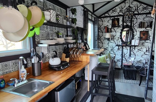 Enjoy this enchanting tiny home where dreams defy size, and the spirit of Edgar Allan Poe's literary masterpiece inspires an extraordinary getaway.