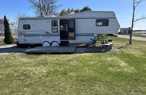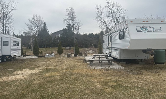 Sun Daze site has one Queen Bed and a pullout couch as well as the dining table can convert as well. Equipped with a full kitchen and dining. 4 piece bathroom. Fishing and docking during your stay are right at your doorstep. Enjoy this quaint site and the beautiful sunsets. The view is amazing.