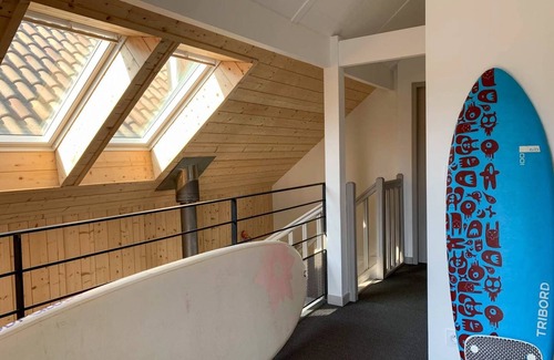 Upstairs, you'll find a bedroom with two single 90x200cm beds with a closet, a second bathroom, and finally, a mezzanine with a 140cm bed.