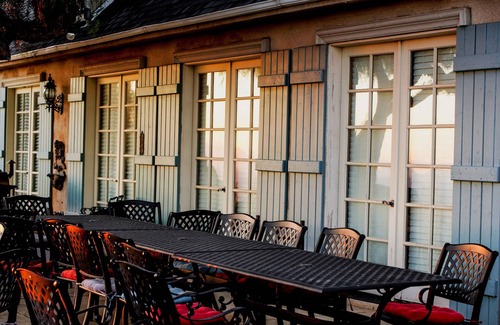 With 8 charming bedrooms in the 3-story Mansion and 4 cosy cottages just a 2-minute walk away, we have a total of 12 bedrooms on the enormous estate grounds that can accommodate up to 20 guests. Each cottage comes with its own bathroom, kitchenette, aircon, heating, and patio spread around the property. Our pastel blue window shutters, splendid lawns, and architectural grandeur are reminiscent of a classic home in the French Countryside.