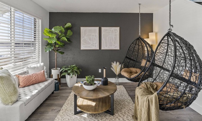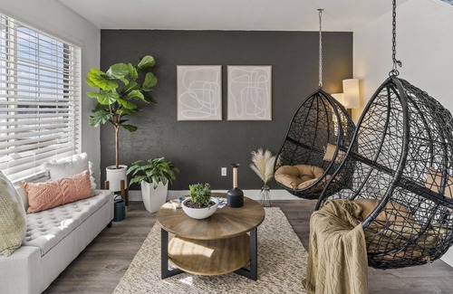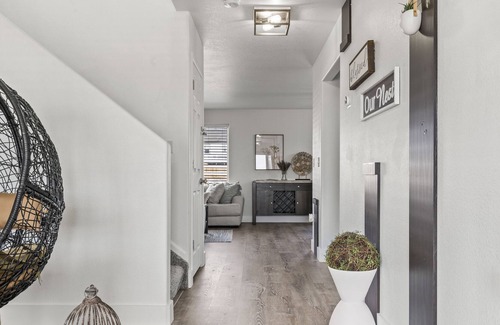 Gather your family and friends to enjoy a bohemian style home with breathtaking mountain views. Feel a sense of peace by sitting on the hanging chairs. Make a home cooked meal with our fully equipped kitchen. Lay back and relax, pick your favorite movie and play it on a 110"+ HD projector equipped with LG sound system. Popcorn machine with butter and popcorn seasonings. Enjoy our gym. Savor the outdoors on a 16,000 sqft lot! Basketball hoop on the premises. Trails, sunsets & more.