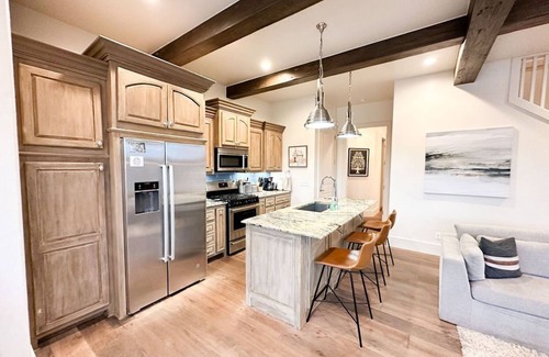Grand Life Cottage: Save 15% Off 3+ Day Stay! “Grand Life Cottage” is a 2100 sq ft, 3 br, 3.5 ba home with amazing views of ponds, streams, waterfalls and Grand Lake. The cottage features one master suites with king bed, a second master suite w/ 2 queen beds and a secondary suite with one queen bed and two built in twin bunks. All beds have memory foam mattresses. Grand Life Cottage is conveniently located next to the community pool in a premium gated complex about 30 yards from the lake. The home has an open floor plan, cozy living room with plenty of seating, large dining room, premium furniture, gas fireplace logs, fully stocked kitchen, large hot tub, outdoor fire pit and dining table w/ umbrella, gas grill, fishing, community pool and available on-site boat rentals. There is a grocery and hardware store 1/8 mile away. Also we now have recommended in-rental home provisions, chef and massage therapy services available! Details available after booking! Note: South Shore is in final development and construction maybe preset in areas.
