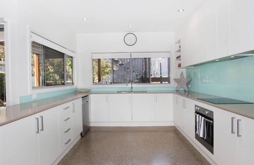 Complete with five bedrooms, two bathrooms, air conditioning and Wifi the beautiful interior is fresh and inviting, while the gourmet kitchen is spacious and fabulously equipped for entertaining family and friends. Guests can enjoy meals together indoors or under the covered alfresco space overlooking the sparkling swimming pool. With two living areas and two large TVs as well as upstairs balconies both front and rear, there are numerous places to relax and unwind during your stay. The owners have also thoughtfully provided a portable Bose Bluetooth speaker beneath the living room television.