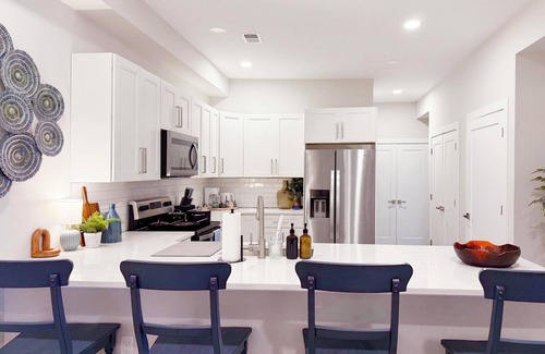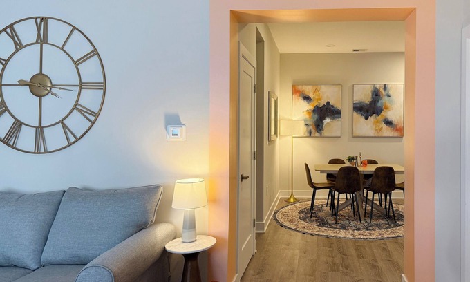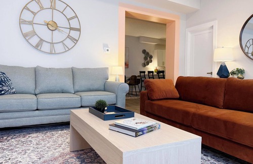 Welcome to your perfect home away from home! This spacious 1500 ft² 2 bed, 1.5 bath apartment features 5 Beds. 1 king bed, 2 queen beds, sofa bed, and premium queen size air mattress. A fully equipped kitchen with modern appliances. Enjoy thoughtfully designed spaces, a long with a full and half bathroom. Whether you're here for work or relaxation, this stylish space offers the comfort and convenience you need for an unforgettable stay!