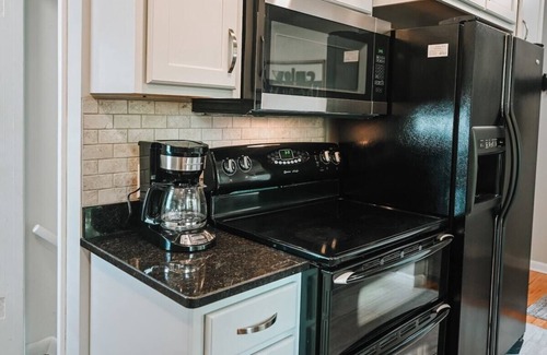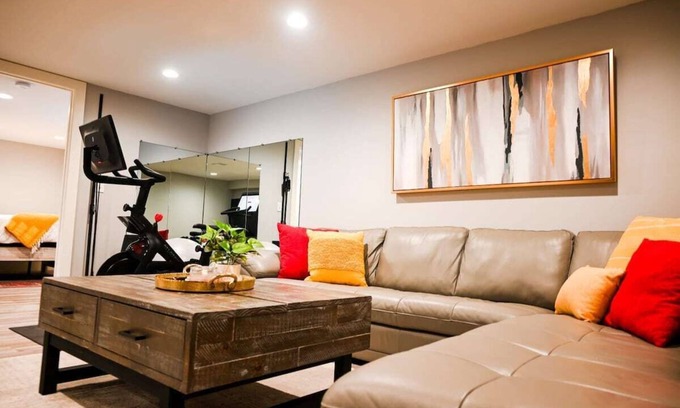 You’ll also have access to the backyards with a hot tub, grills (we’ll supply the propane), and patio seating. Each driveway fits up to two cars with additional street parking in front.