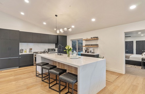 A total of 7 bedrooms and 5 bathrooms, and two huge common spaces to hang out in.. Every inch of the house is professionally designed and decorated.