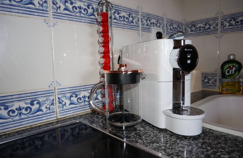 The fully equipped kitchenette comes with fridge / freezer, hob, microwave, washing machine and coffee machine. All cooking equipment and place settings for 4 people are provided.