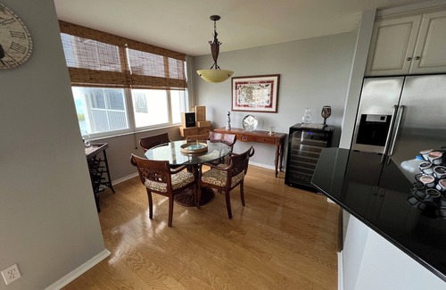 This unit has everything you’ll need. The kitchen is equipped with full-size appliances and includes a coffee maker, Keurig machine, toaster, cookware, dishes, silverware, and glassware. All towels and bed linens are provided and there's an in-unit clothes washer and dryer.