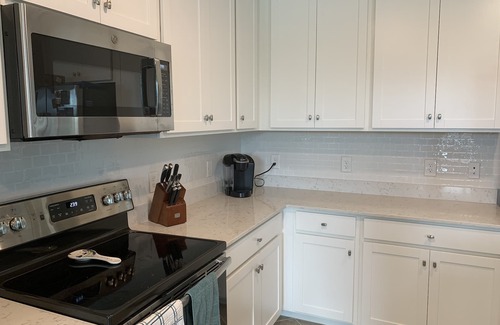 Best stocked kitchen you will find onVRBO. Crockpot, air fryer, insta pot, toaster oven, steamer, veggie bullet, and more.