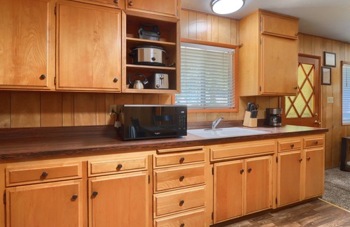 - Convenient Amenities: Enjoy a fully equipped kitchen for meal preparations, alongside a cozy living room featuring a wood stove, satellite TV, and WiFi to keep everyone connected and entertained.