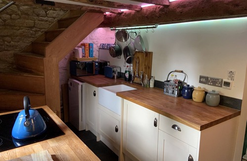 It is quintessentially Cotswolds in character with Cotswold stone, exposed beams, stone-flagged floors, an inglenook fireplace and stable doors. There are front and back gardens, a kitchen and lounge, bathroom, master bedroom (with a superking sized bed) and a twin room on the third storey with stunning views of the surrounding countryside.