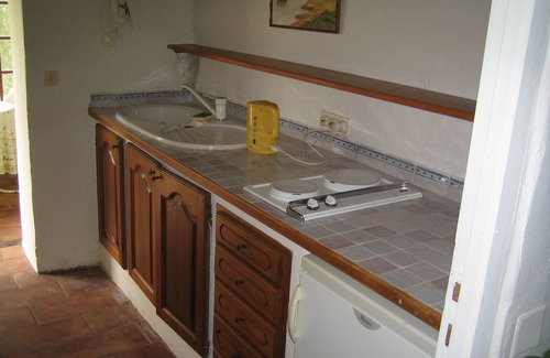 The independent garden flat facing the garden and the swimming pool is about 50 m2. It has a a double bedroom and a sitting room, which if necessary could be converted into another double bedroom, a kitchenette a shower room and a toilet. Built as a summer flat - a traditional feature of the old Provencale houses- it is naturally cool and doesn't need air-conditioning.