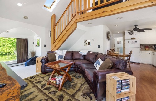 The skylight windows up in this loft can be cracked open to release hot air quickly from this home.( Please be sure to close windows or leave cracked open by 1 - inch, when not using or if you’re not home.)