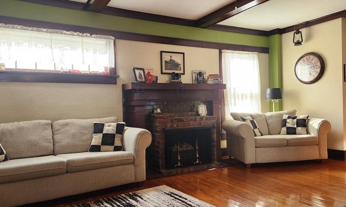Inside, you’ll discover artwork, décor, and details inspired by Trains, Iowa, and the Midwest, making your stay a true Boone experience. From its original heart pine floors to restored windows with working pulleys and leaded glass panes, history comes alive in this one-of-a-kind stay. Whether you're here for adventure, relaxation, or a step back in time, the 607 Guest House is more than just a place to sleep—it’s an experience.
