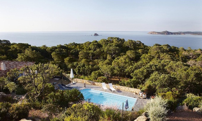 180° view of Pinarello Bay Heated pool Private access to cove 5/7 rooms is located in Pinarellu. 180° view of Pinarello Bay Heated pool Private access to cove 5/7 rooms provides accommodation, featuring Private Pool, Balcony/Terrace, Kitchen, among other amenities. This Villa features Private Pool, Balcony/Terrace, Kitchen, to make your stay a comfortable one.